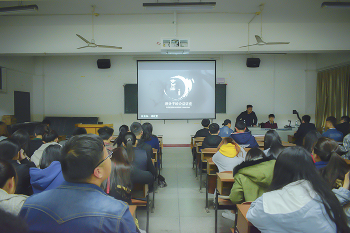 开讲前艺品工作室老师首先给在座的学生们讲解了关于手绘的重要作用,让同学们深刻了解到学习手绘的重要性,接着又以ppt的形式向同学们展示了许多优秀的手绘作品,并对其作品进行一一讲解。还在现场为同学们做示范,教授了许多手绘技巧方法,首先他从拿笔的姿势、运笔的方法开始讲解,以保证让同学们都能听懂、都能学会,并告诉同学们“手绘是非常有必要的。”在场同学仔细观看认真记录,讲座现场气氛热烈,座无虚席。讲座最后,艺品工作室老师希望喜爱手绘的同学更多更深入的去学习,了解并掌握一定的技能。让同学们深刻的了解到学好专业对大家将来步入社会就业有着重要的作用。